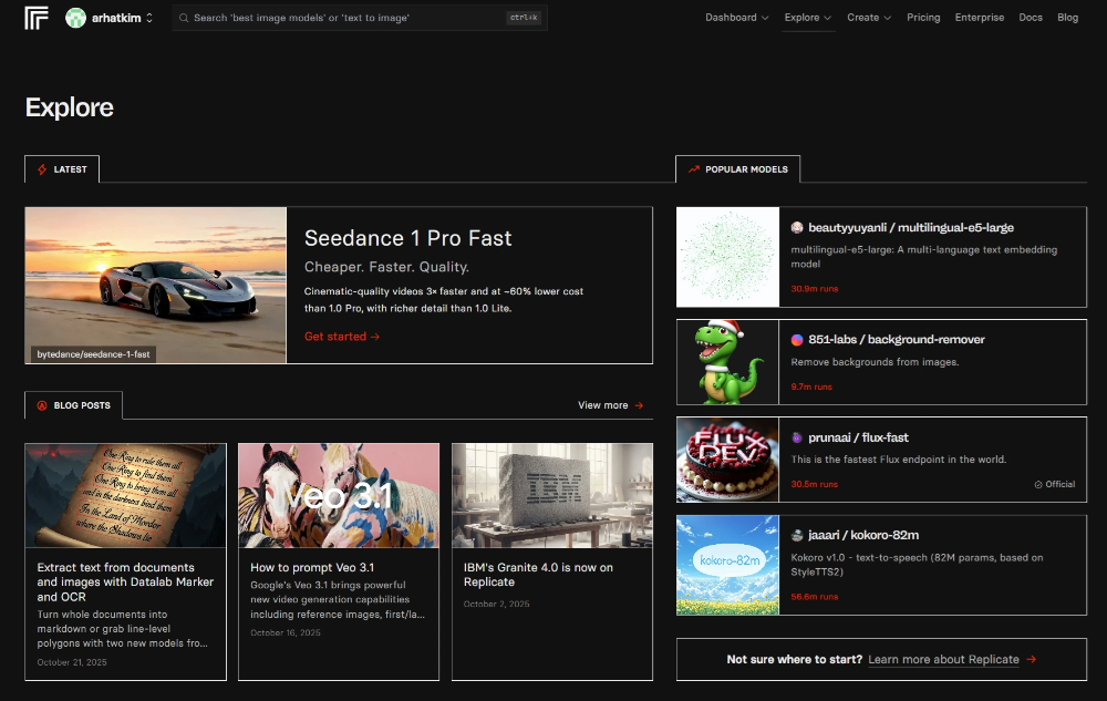 리플리케이트는 단순한 모델 호스팅을 넘어, 활발한 오픈 소스 AI 모델 생태계를 구축하고 있다는 점에서 차별화됩니다.특히 아래와 같은 주요 장점이 존재합니다.