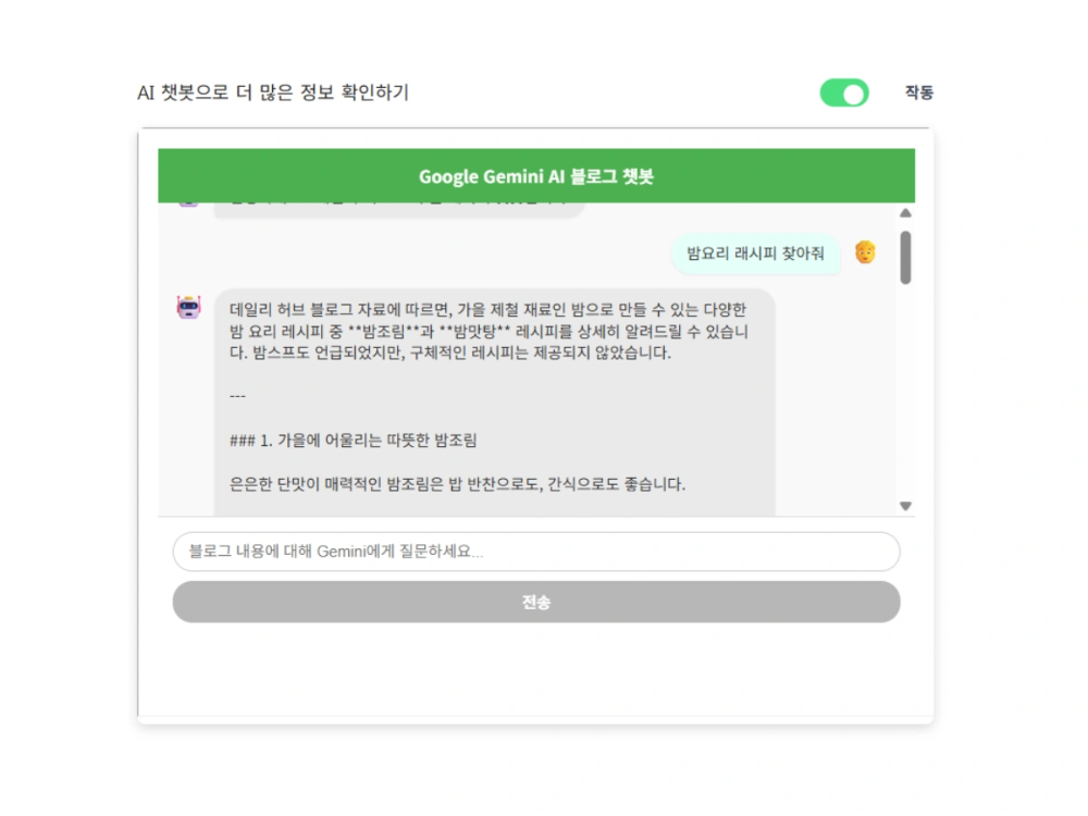 분명 내 블로그에 밤요리 레시피 글이 있는데, AI는 왜 자료가 없다고 할까?
