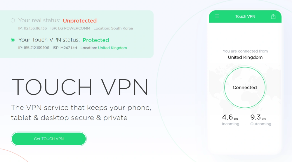 별도의 프로그램 설치 없이 VPN을 사용하고 싶다면 Touc vpn 크롬 확장 프로그램을 추천 드립니다. 크롬 브라우저 상단에서 클릭 한 번으로 작동합니다.