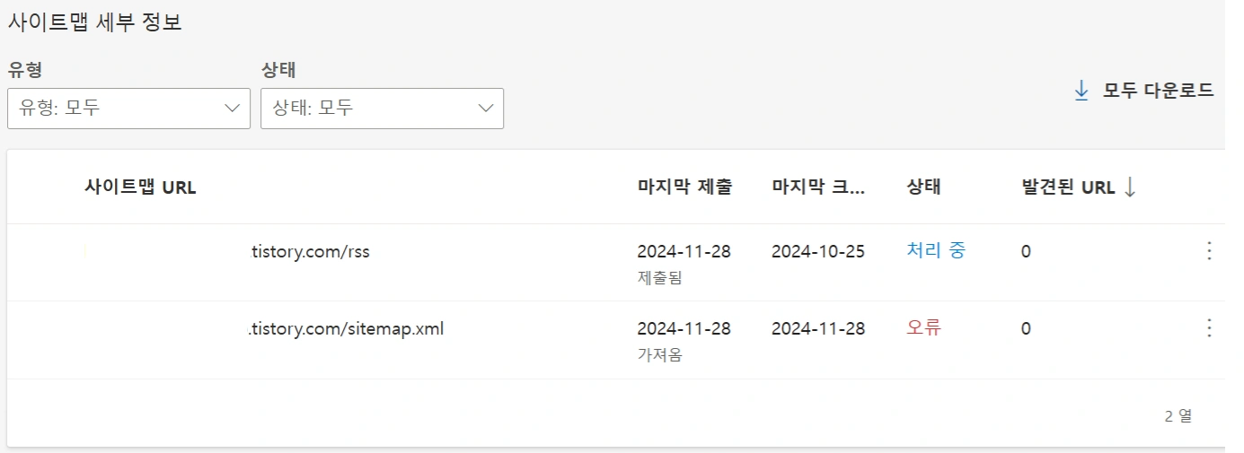 | 사이트맵 인식 | 빈번한 429 오류 발생 | 안정적인 성공 및 인식 |