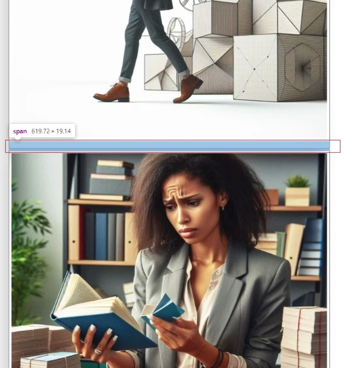 If padding and margin properties are specified for each block as in the code below and some are not applied, it is because there are other properties in the span. You can force this property to a desired value. Below is a case applied without spacing. The main solution is to change the image element to a block element (display: block;) or set the line-height of the element wrapping the image to 0.