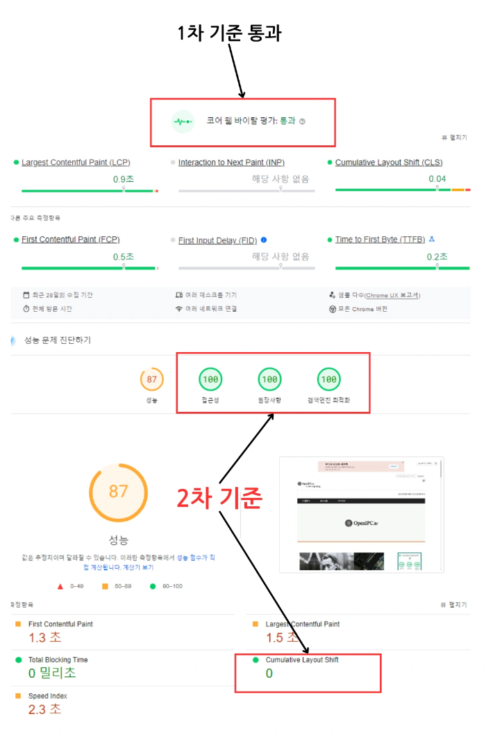 However, among the secondary criteria, CLS (layout stability) and SEO scores should not vary depending on how content is written. Note, however, that secondary domain optimization and unique domain optimization may result in different measurements as external factor measurements are reflected.