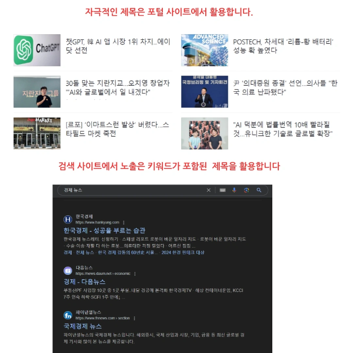 Exposure and Choice: When conceiving a title after writing a post, one must determine whether it is for a portal site or for search and select a title accordingly. I believe this judgment is related to the direction pursued by the operator. However, writing search-oriented content with a portal-oriented title should be reconsidered in terms of click-through rate (CTR) and search exposure efficiency.