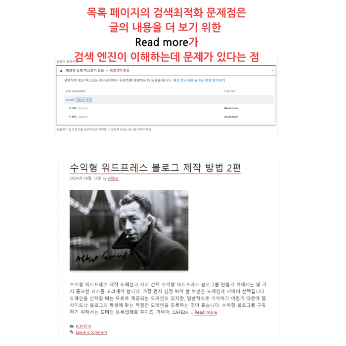 SEO Issue: Search engines find it difficult to determine exactly what the user is ‘reading more’ of. This is flagged because ‘links do not contain descriptive text,’ resulting in a lower SEO score.