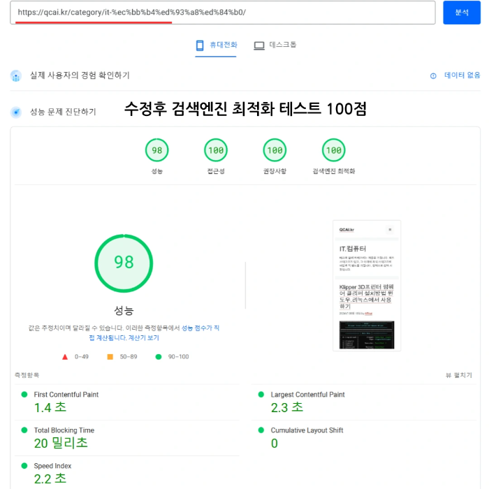 Since category pages list multiple posts, issues regarding layout stability (CLS) and SEO can occur during initial loading. The initial test revealed a specific issue.