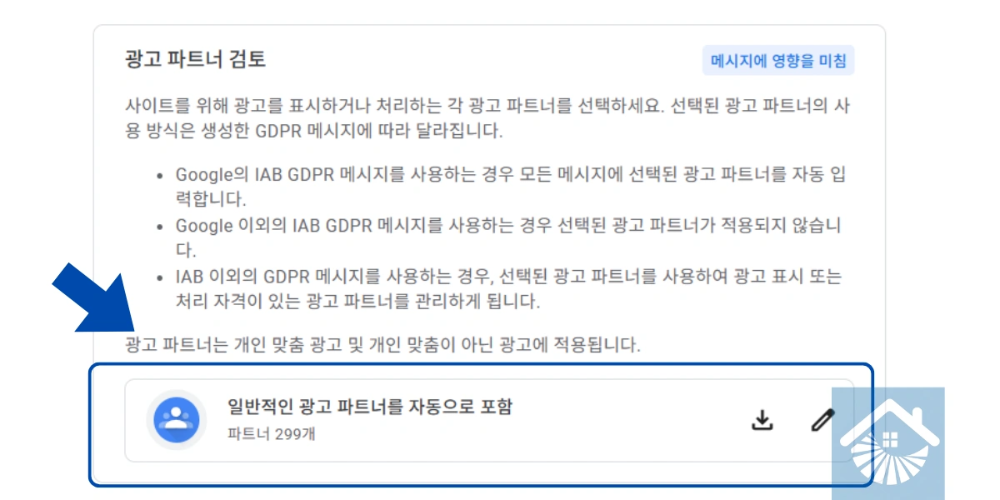 - 광고 파트너 검토: ‘일반적인 광고 파트너를 자동으로 포함’을 체크하세요. 최대한 많은 광고주가 입찰에 참여해야 단가(eCPM)가 상승합니다.