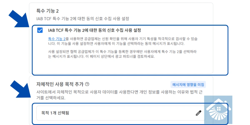- 적법한 이익(Legitimate Interest) 설정: 이 설정은 수익 손실을 방지하는 가장 중요한 장치입니다. 기본적으로 사용 설정으로 두어야 동의하지 않은 사용자에게도 광고 송출 기회를 확보합니다.