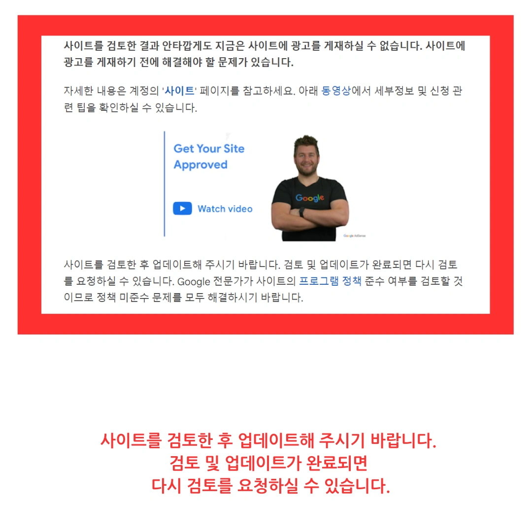 A2. In most cases, Google does not provide a specific reason and uses comprehensive phrases such as ‘Low-value content’ or ‘Policy violation’. In the past, they might have judged small quantities of content as ‘Insufficient content’, but currently, they emphasize the quality and originality of content rather than simple quantity. In other words, even with 100 posts, you may be rejected if they lack originality, whereas you can be approved with just 10 high-quality posts.