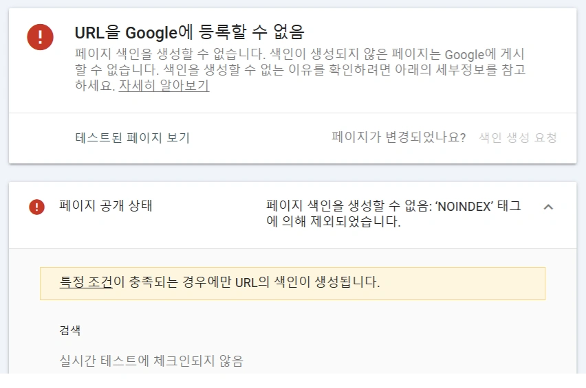 답변: 검색 로봇이 다시 해당 페이지를 방문하여 noindex 태그를 확인해야 합니다. 서치콘솔의 ‘URL 검사’를 통해 수집 요청을 하면 더 빠르게 처리될 수 있습니다.