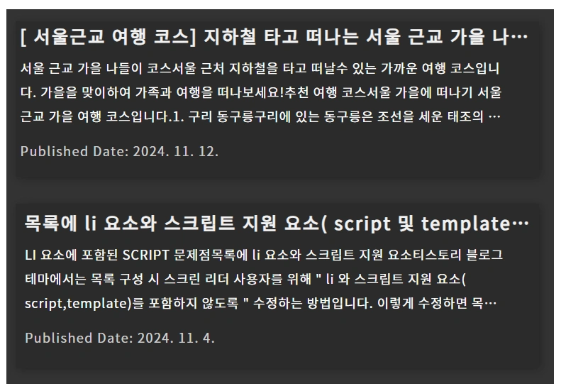 - 콘텐츠 요약이 생략됨: 글의 요약 부분이 제대로 표시되지 않는 경우가 많습니다.