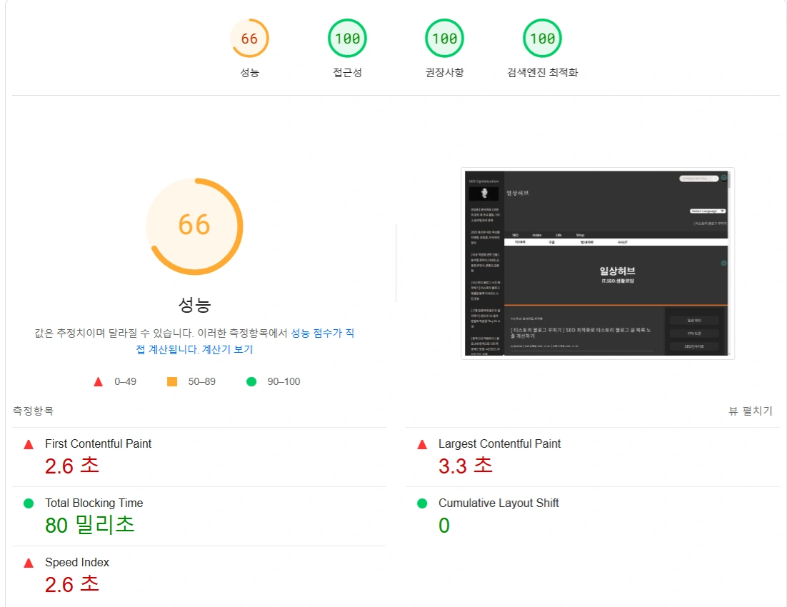 | Good (좋음) | 2.5초 이하 | 현재 최적화 상태 유지 |