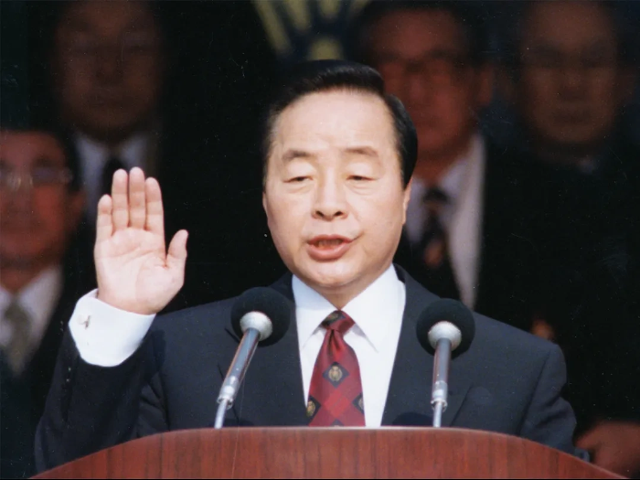 김영삼은 1993년부터 1998년까지 대한민국 제14대 대통령을 역임했습니다. 민주화 운동의 선구자였으나 재임 중 안전 불감증 사고로 인한 대형 참사가 잇따랐습니다.