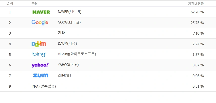 | 검색엔진 | 점유율 (%) | 크롤링 차단 영향도 | 비고 |