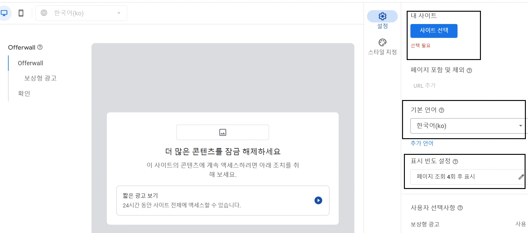애드센스 Offerwall 메시지 설정 상세 가이드
