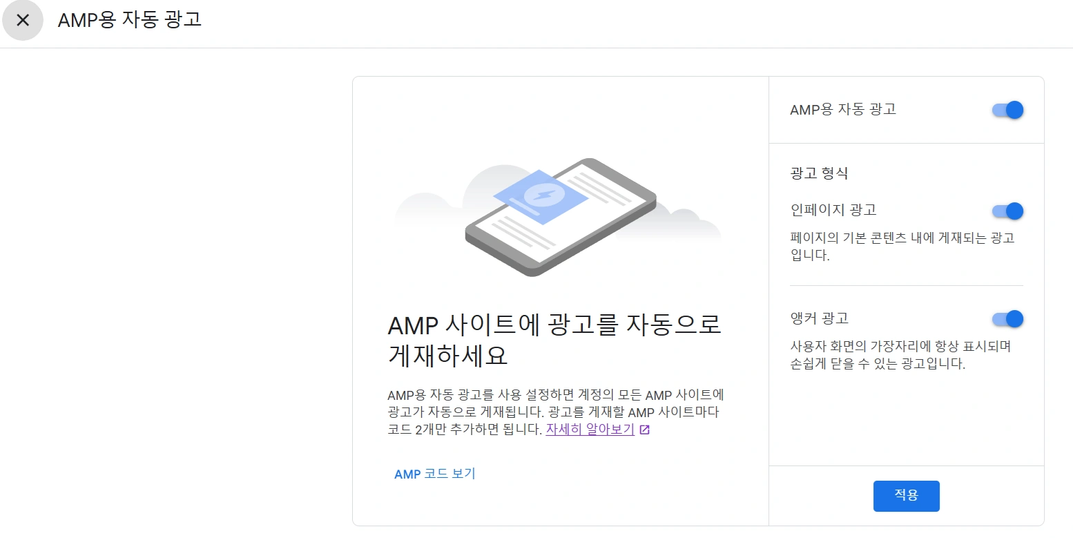 구글 애드센스 AMP 자동 광고 설정