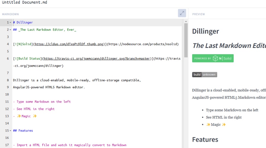 - Dillinger: 실시간 미리보기를 제공하는 웹 기반 도구 (사이트: dillinger.io)