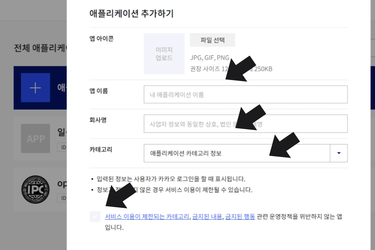 - 카카오 개발자센터 회원가입 및 앱 생성