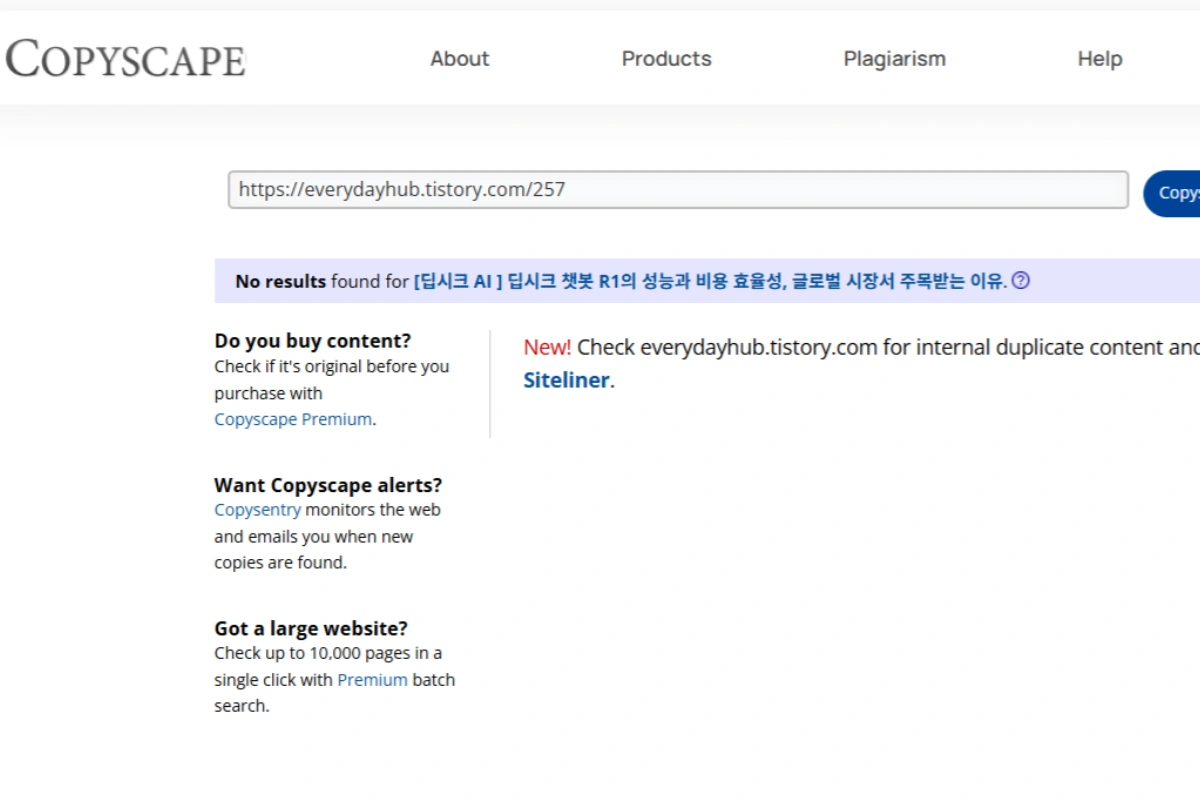 작성한 콘텐츠가 유사 콘텐츠로 간주되지 않도록, 아래 대표적인 표절 검사 툴을 사용하여 중복 여부를 미리 확인해보는 것도 좋은 방법중 하나 입니다.