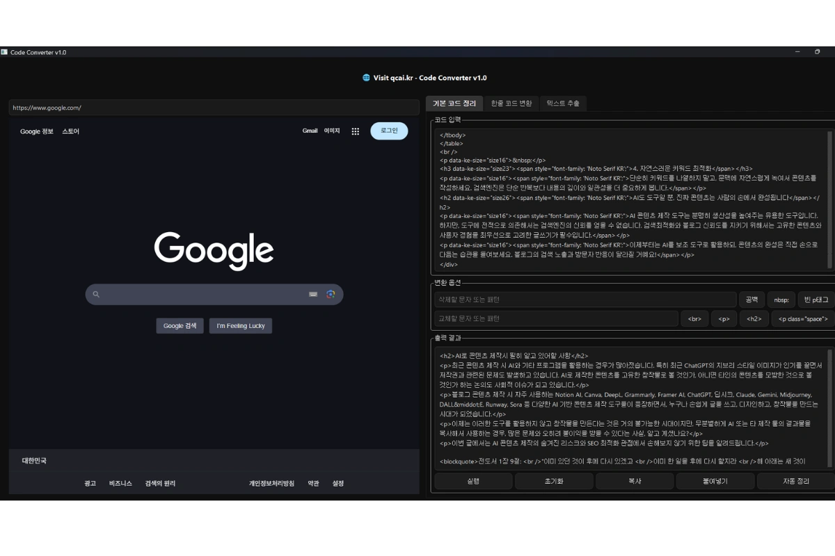 AI를 보조 도구로 활용하되, 최소한의 흔적은 지우는 습관을 들여 보세요. 위에 공유하는 툴은 불필요한 태그를 삭제하고 콘텐츠를 깔끔하게 기본 태그로 정리해 줍니다. 이 도구를 활용하시면 최소한의 불이익은 피할 수 있을 거라 생각됩니다. 그리고 콘텐츠의 완성은 직접 손으로 다듬는 습관을 들여보세요.