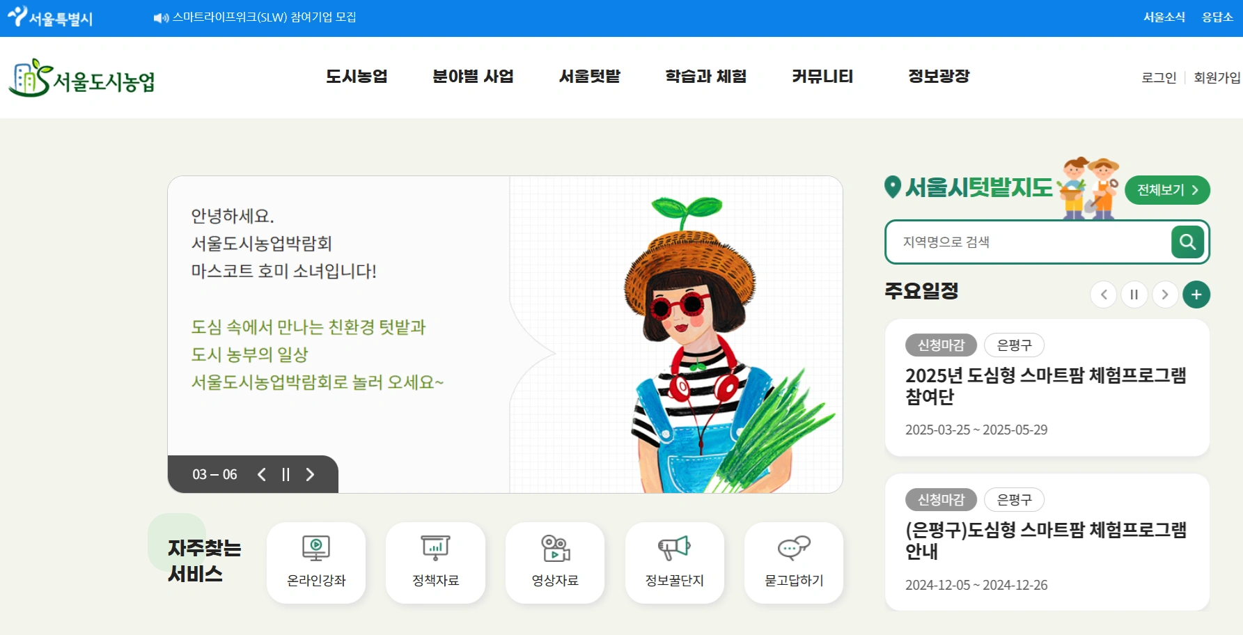 • 커뮤니티 가든 운영: 도시민들을 위한 텃밭 관리 및 농업 교육 프로그램을 기획하고 운영합니다.