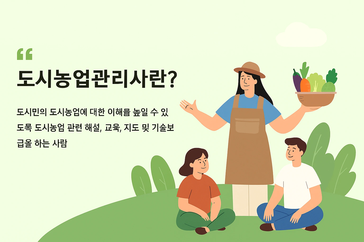 도시농업관리사는 도시 환경에 특화된 농업 기술을 보유한 전문가로서, 스마트팜 시스템을 구축하고, 도시농업 관련 법규를 준수하며, 지속 가능한 농업 활동을 관리하는 역할을 맡습니다. 단순 농부를 넘어 도시농업 해설사, 도시농업 컨설턴트 등의 역할을 수행합니다.