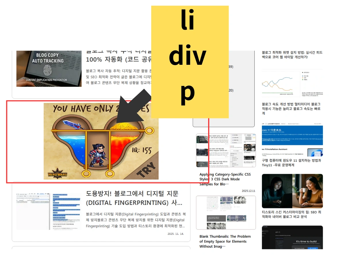 2. 피해야 할 방식: p 태그로 감싸기 (구조 오류 및 미노출 위험)