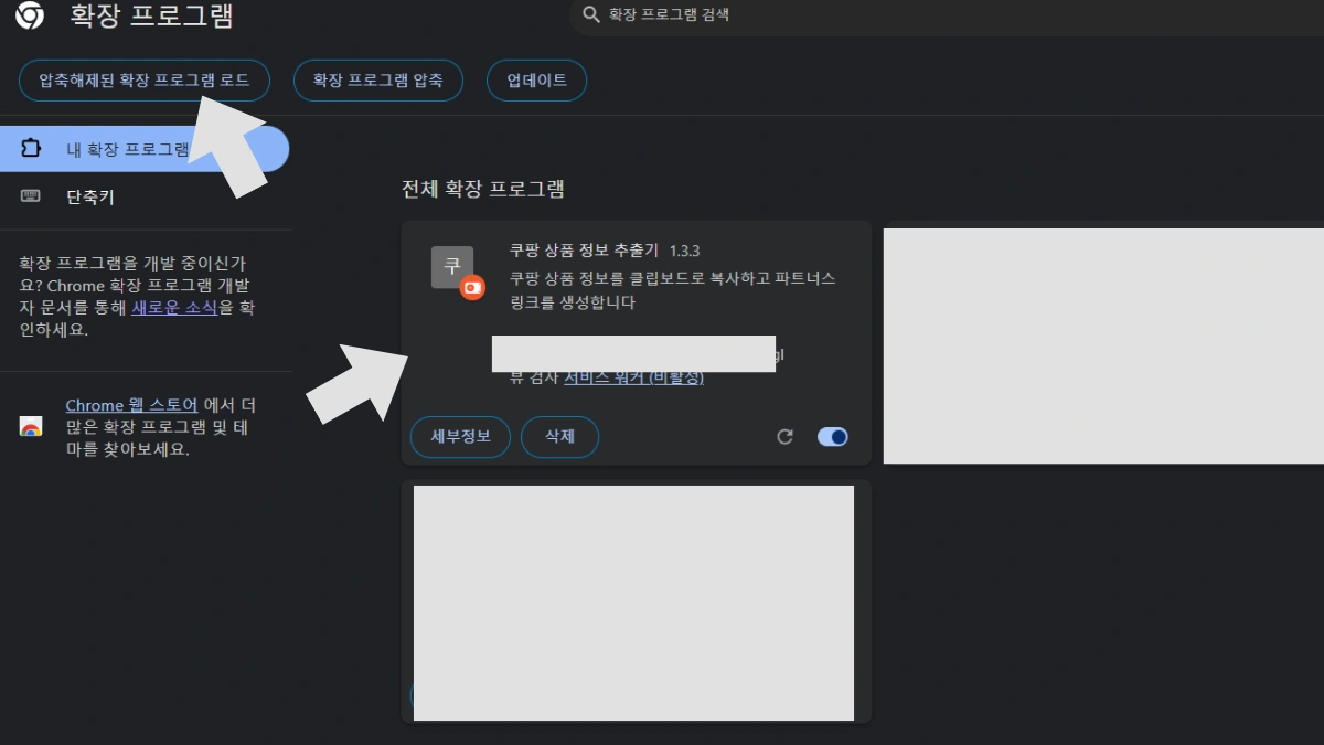 1. 크롬에서 주소창에 chrome://extensions 입력