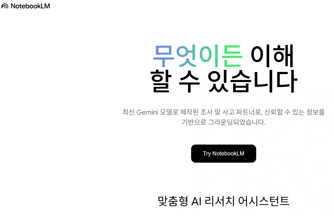 - 오디오 요약, 퀴즈 생성, FAQ, 타임라인 등 학습 보조 기능 포함