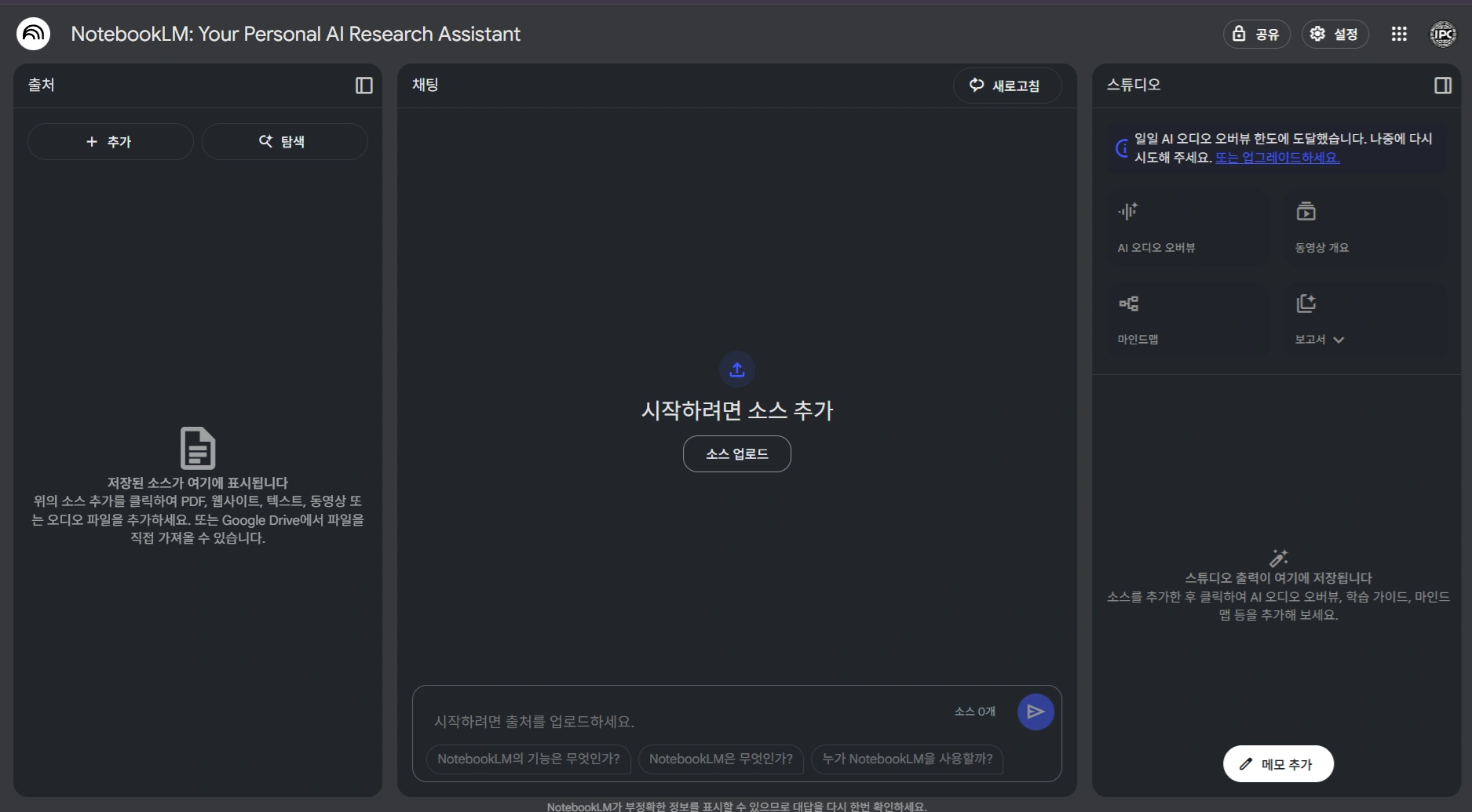 - NotebookLM에 업로드 : AI가 핵심 내용 분석 및 정리