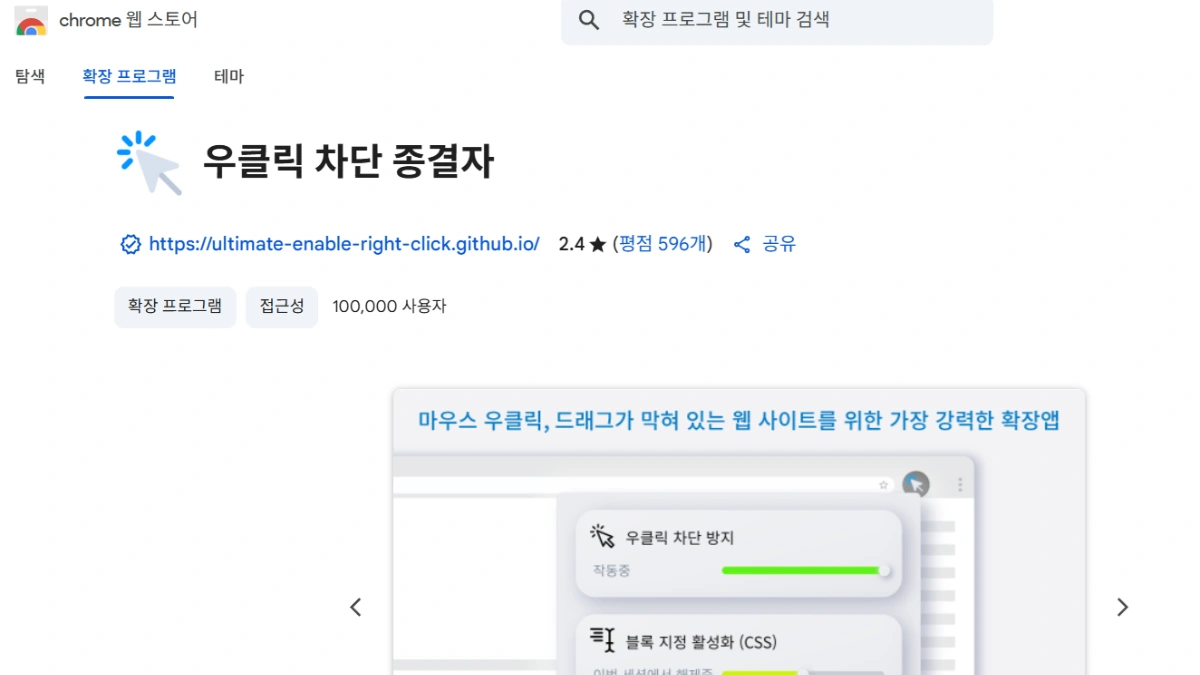 위 코드가 블로그에서 자체 제공하는 우클릭 방지 플러그인보다 더 강력하게 작동합니다.