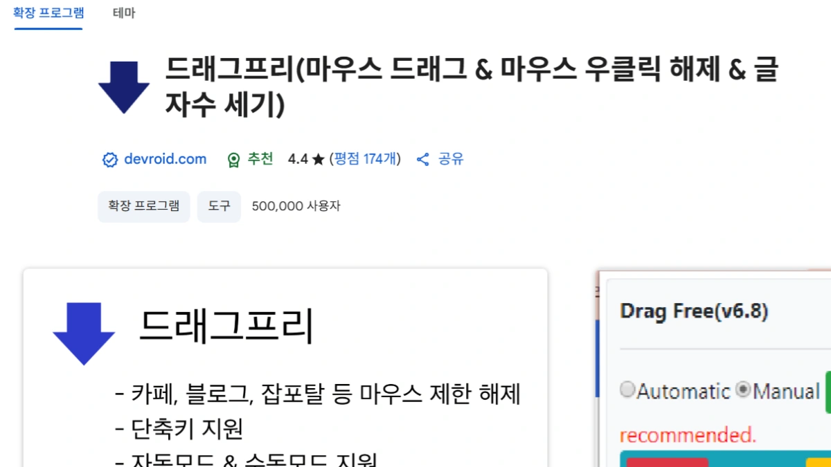 - 확장 프로그램이 document 레벨 이벤트만 제거하거나, window 레벨만 제거해도 다른 쪽이 남아 있어서 차단 유지
