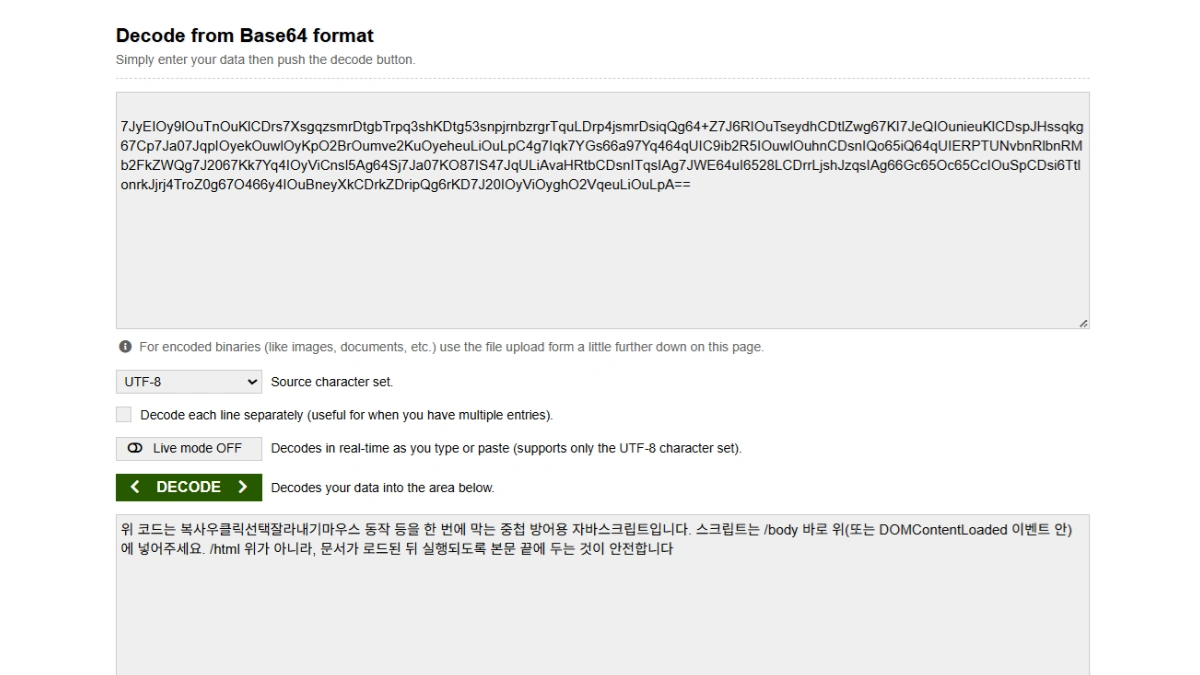 이렇게 하면 확장 프로그램으로 일시적으로 방어막을 해제하더라도, 페이지가 계속 감시하고 있어서 다시 잠기는 구조가 됩니다. 완벽하게 뚫을 수 없다고 장담할 수는 없지만, 대부분의 사용자는 시도 자체를 포기하게 됩니다.