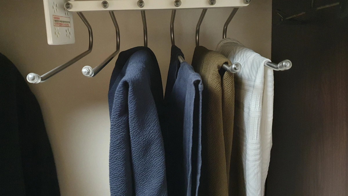 - 바지를 일렬로 걸어 공간 절약
