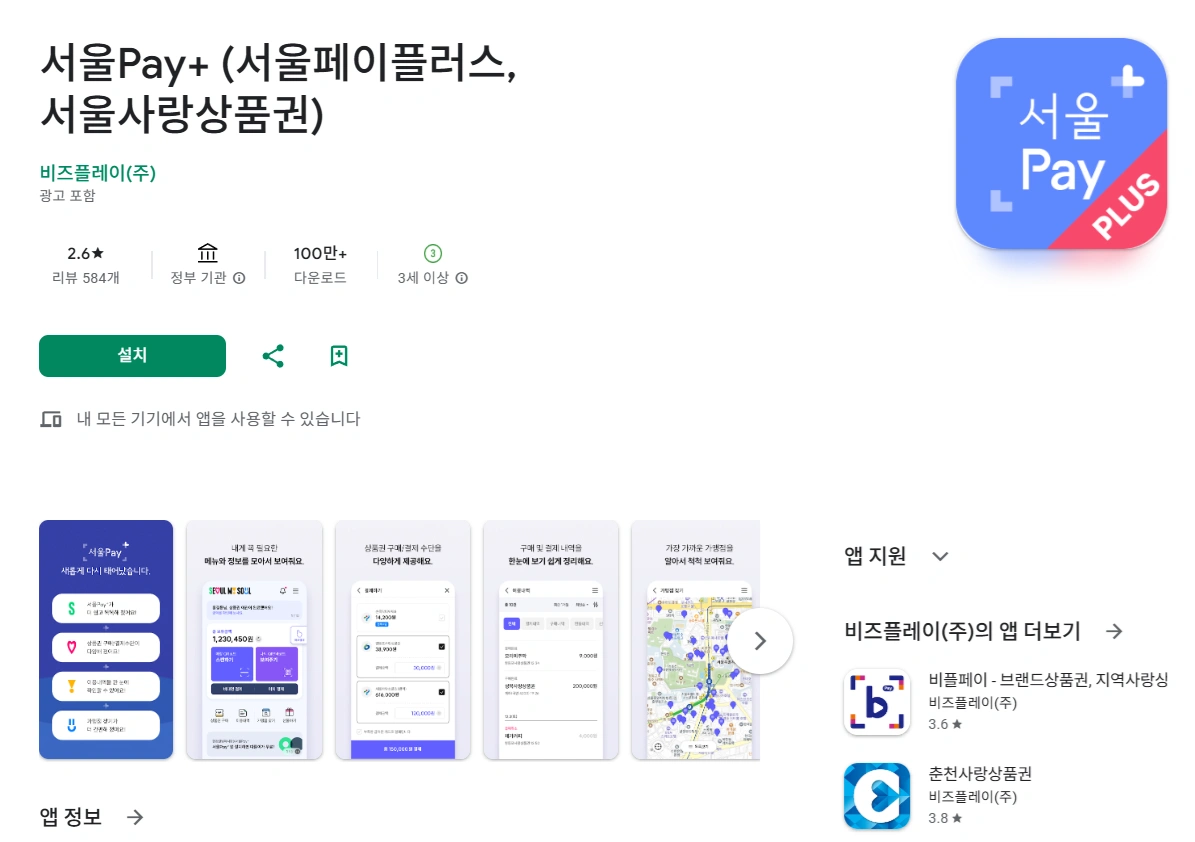 - 서울페이플러스 앱 설치 (구글 플레이스토어, 애플 앱스토어)