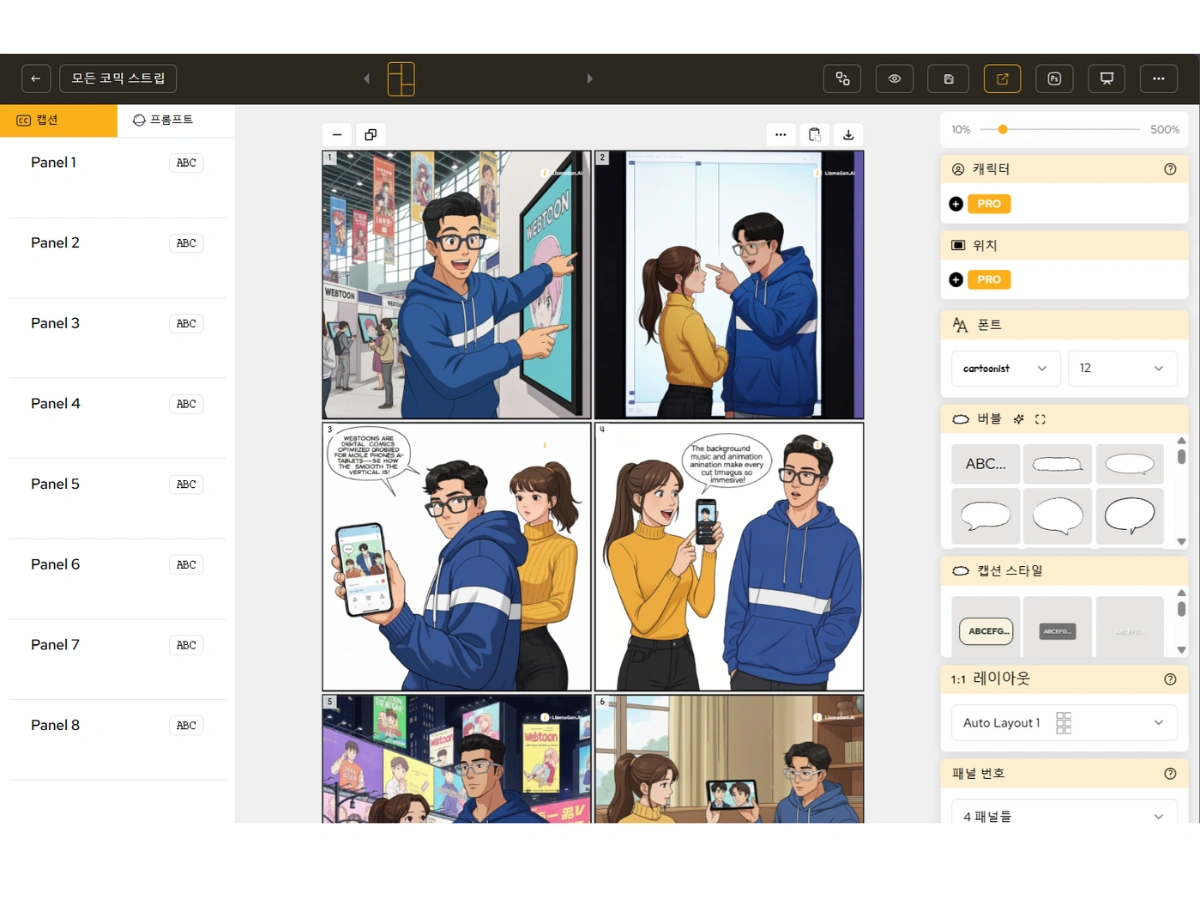 - 채색 및 컷 편집 자동화: 색칠과 컷 구성을 AI가 지원