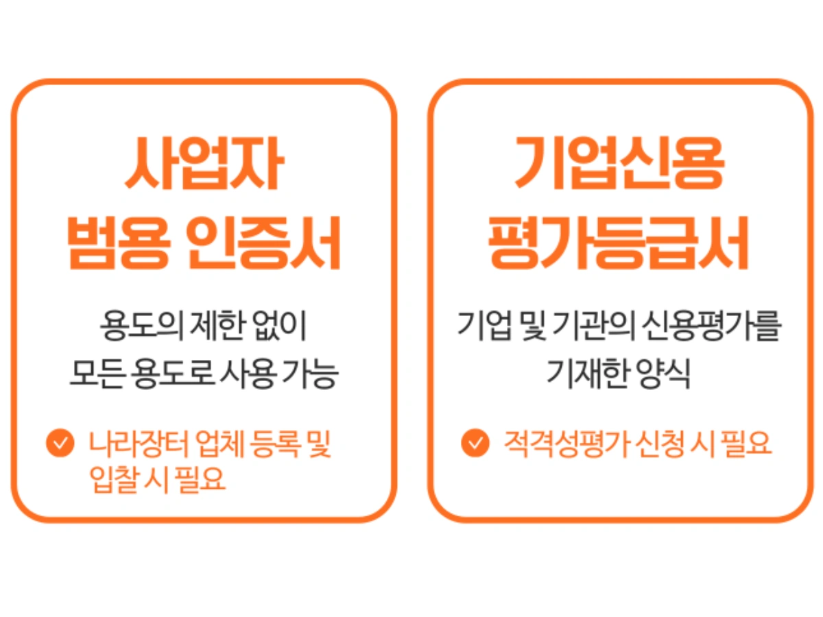 | 자격 제출 | 법인등기부, 제조공급확약서, 직접생산증명 | 업종별 상이 |