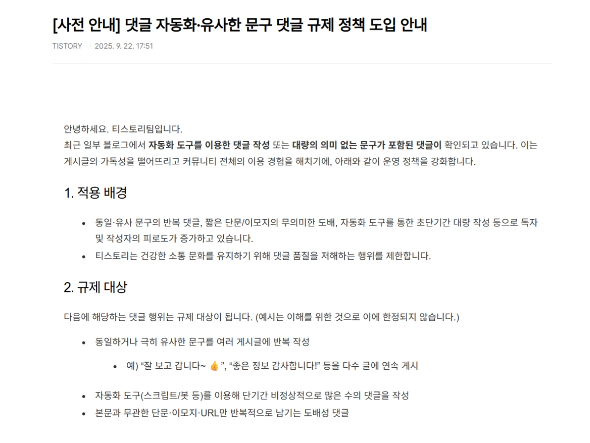 하지만 스팸성 댓글이나 무의미한 반복 댓글이 쌓이면 오히려 검색 노출과 방문자 경험에 악영향을 미치게 됩니다.