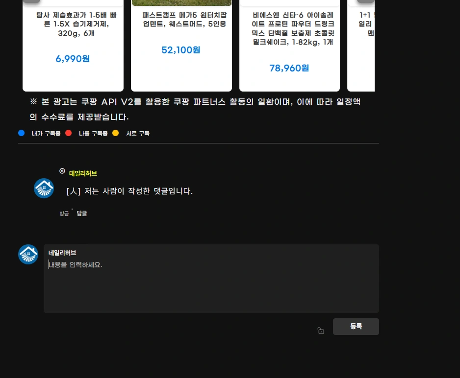 사람이 작성한 댓글 표시로 매크로 댓글 구분 하기