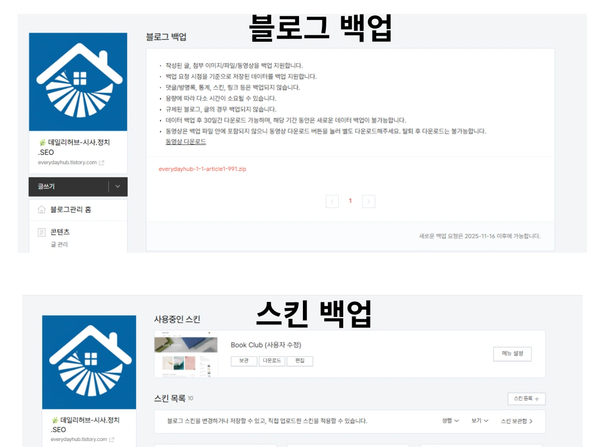 - 스킨 수시로 백업, 스킨 초기화 위험 주의